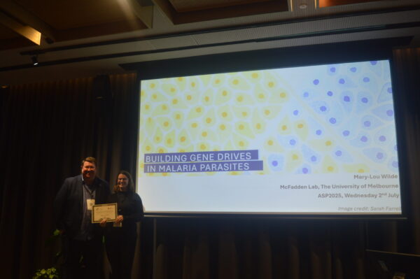 Congratulations to Mary-Louise Wilde, winner of The Don McManus Tropical Health Research Centre & QIMR Berghofer Early Career Researcher Award for the highest rated abstract submitted by an Early Career Researcher at the 2025 Australian Society for Parasitology Annual Conference in Melbourne, 30th June – 3rd July 2025 for your abstract “Building gene drives to…