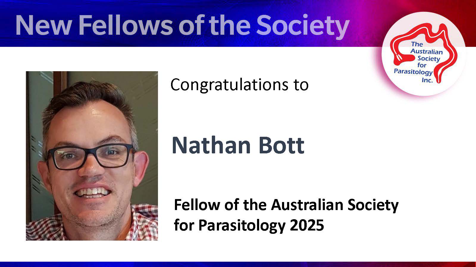 Congratulations to 2025 Fellow of the Australian Society for Parasitology, Nathan Bott