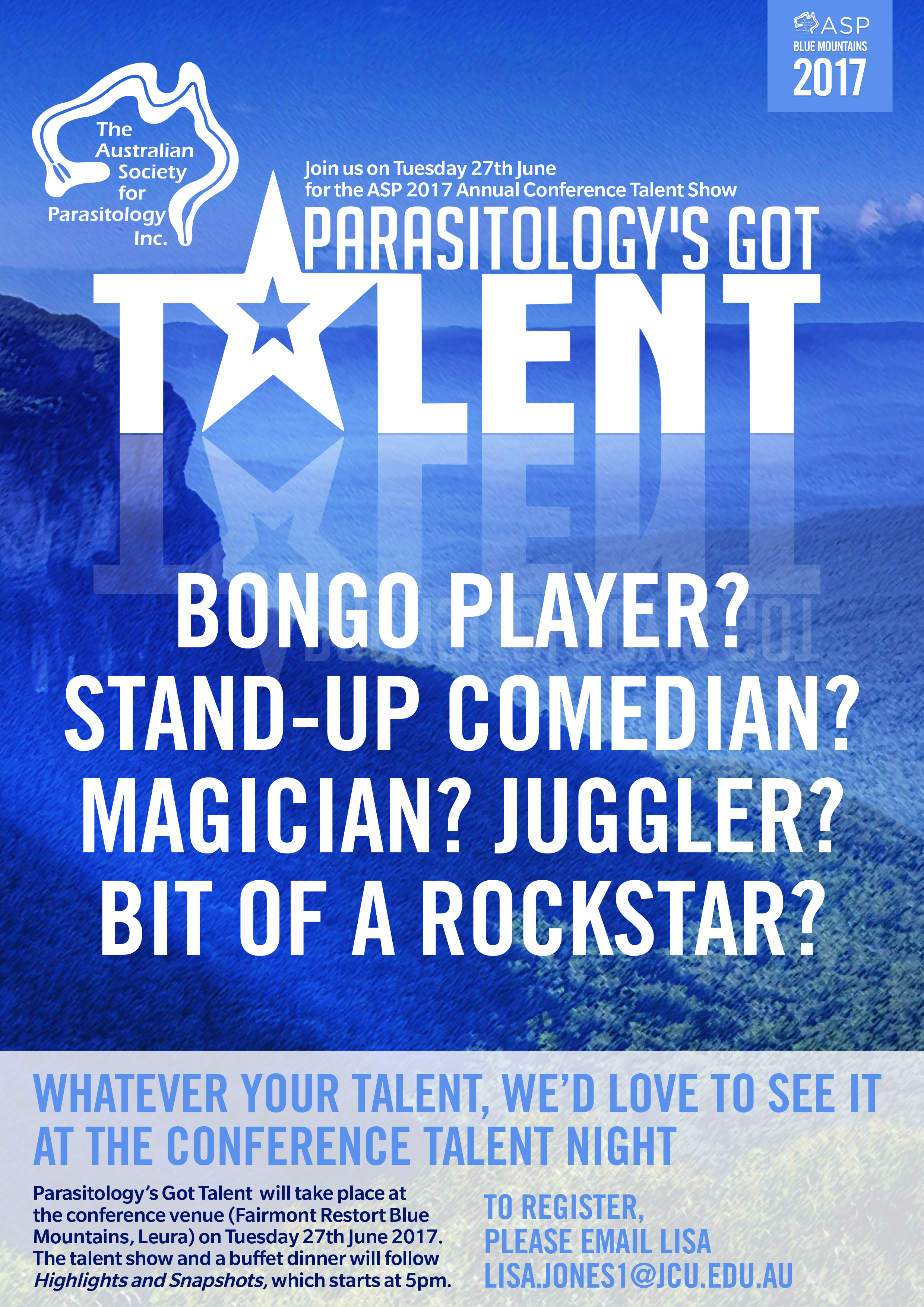 Surprise your colleagues and fellow conference delegates with your amazing talent at the 2017 ASP Annual Conference Talent Show on Tuesday 27th June 2017, following the “Highlights and Snapshots” conference session at 5pm at the 2017 ASP Conference in Leura.